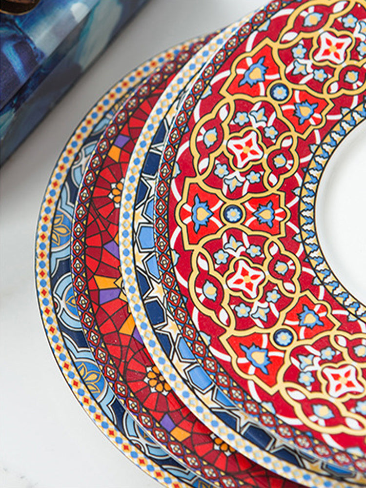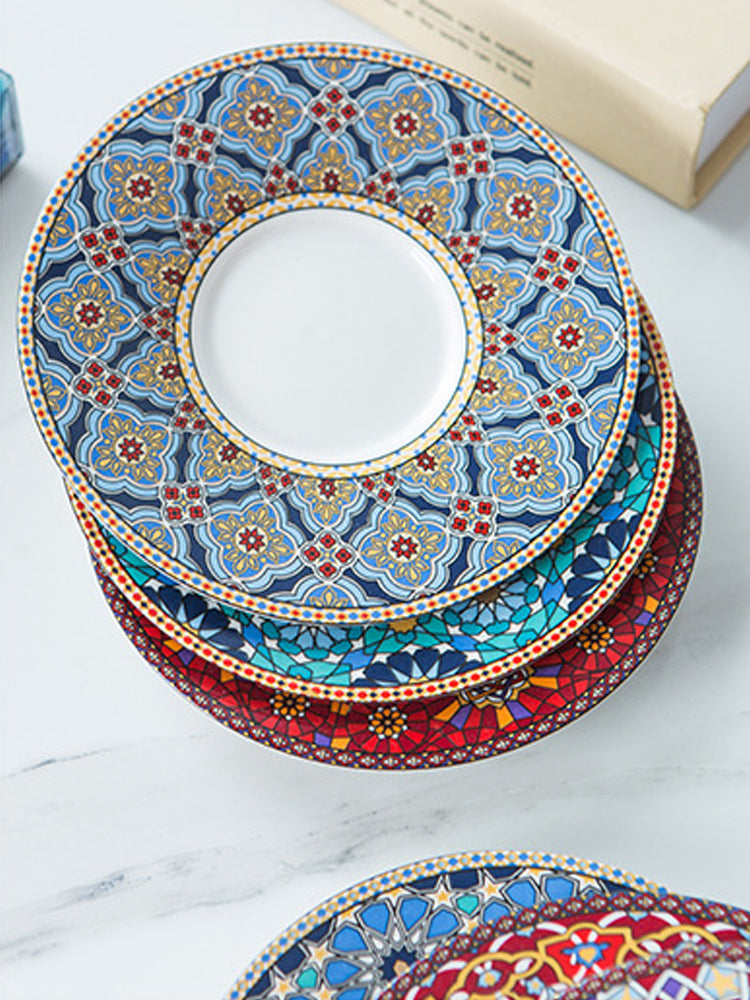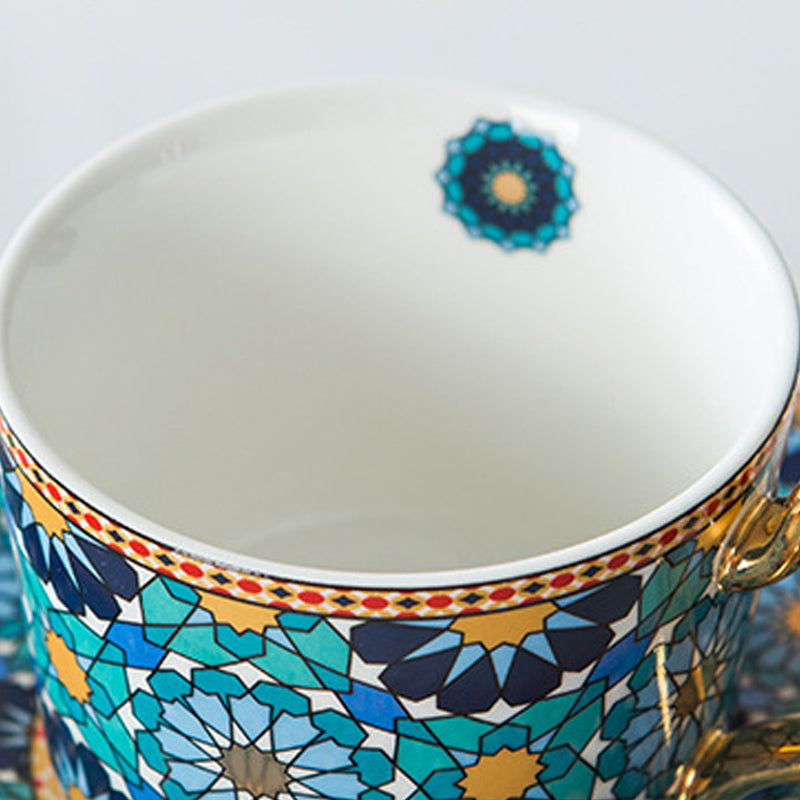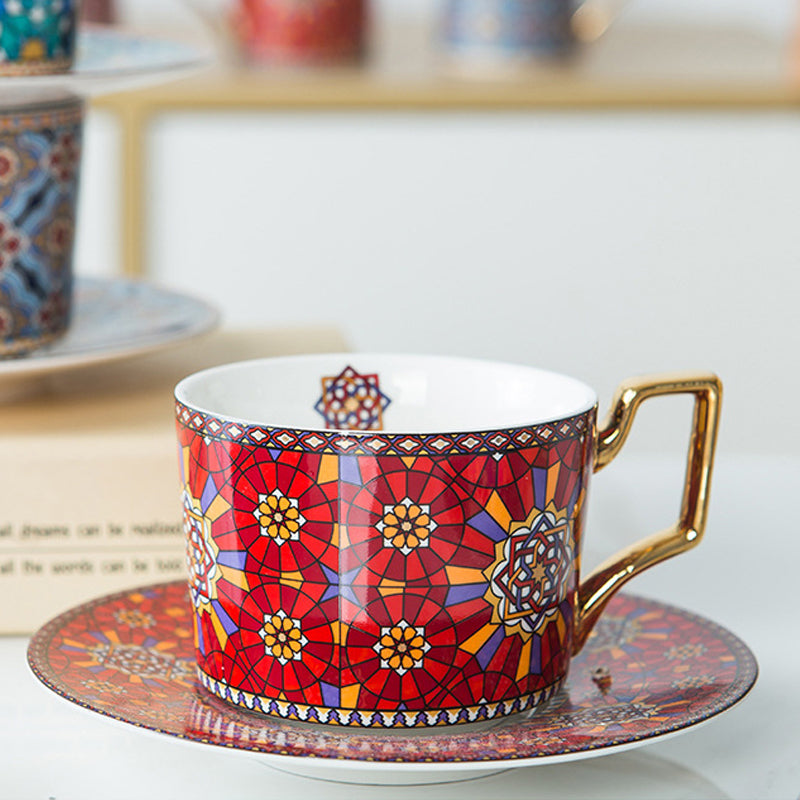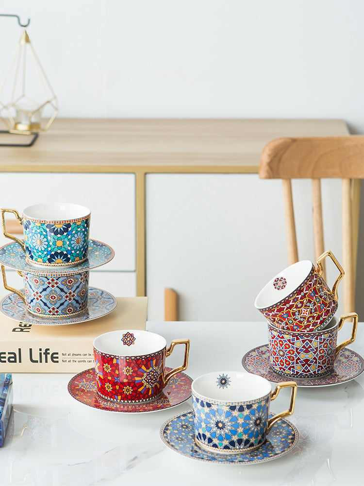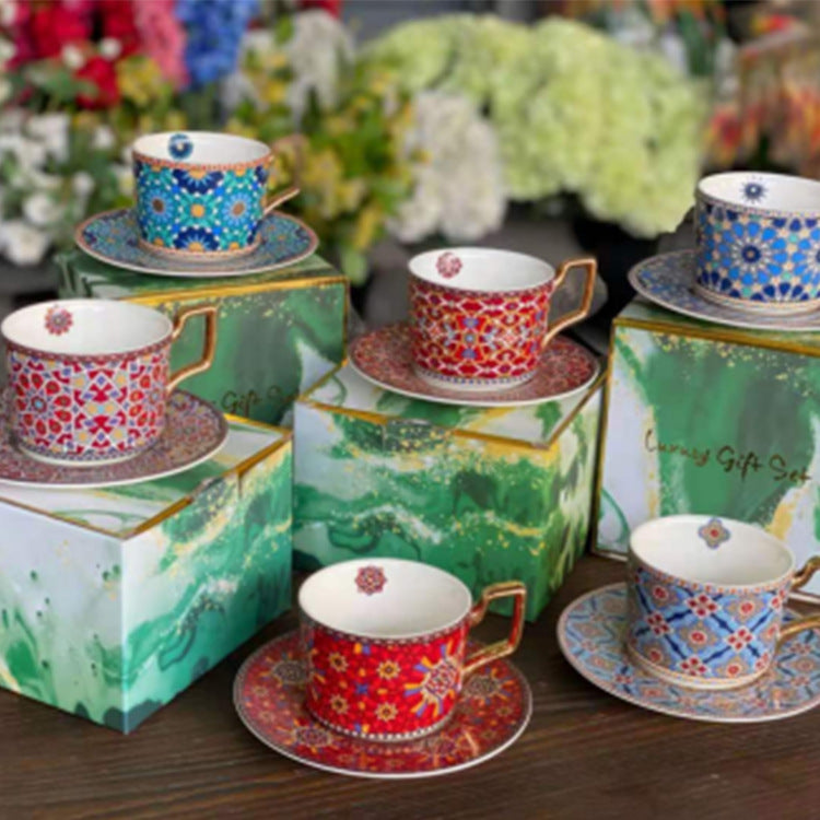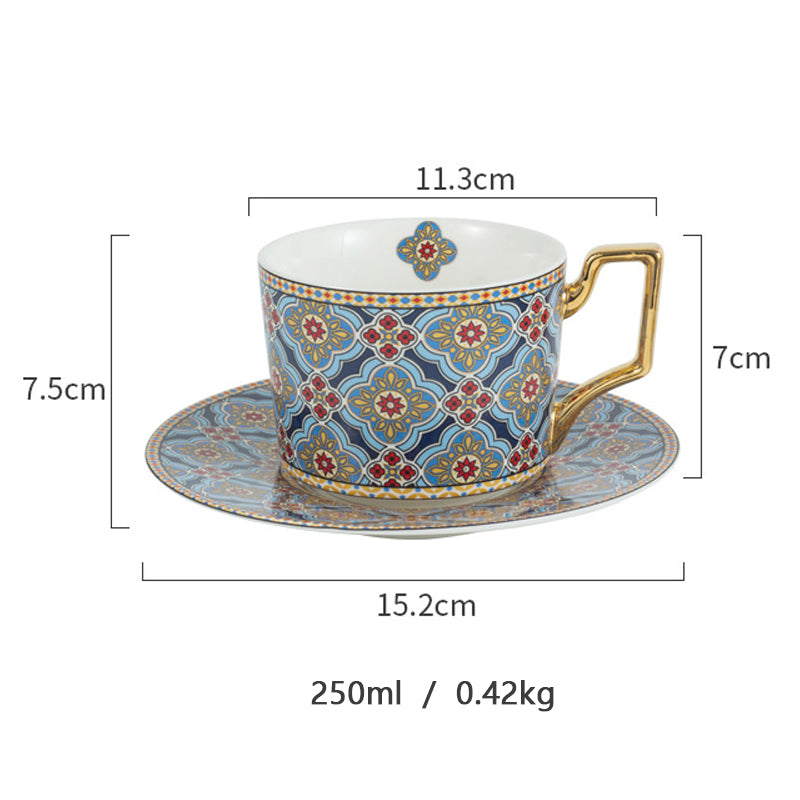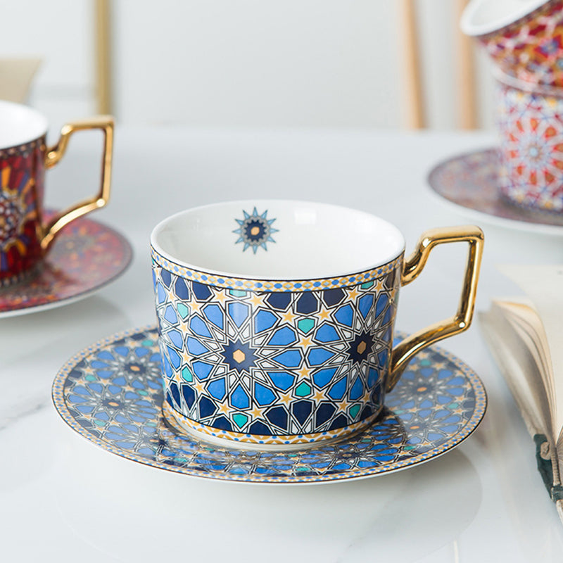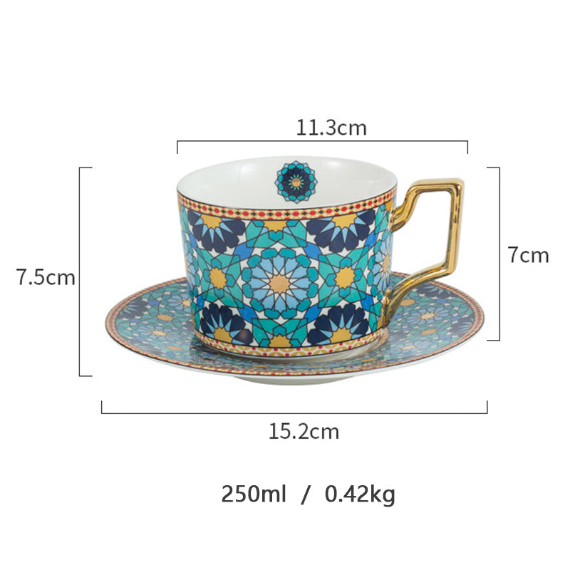 Moroccan Style Luxury Arabic Coffee Cups and Saucer Set with Gold Handel Special Ceramic Cappuccino Afternoon Tea Cup 250ml