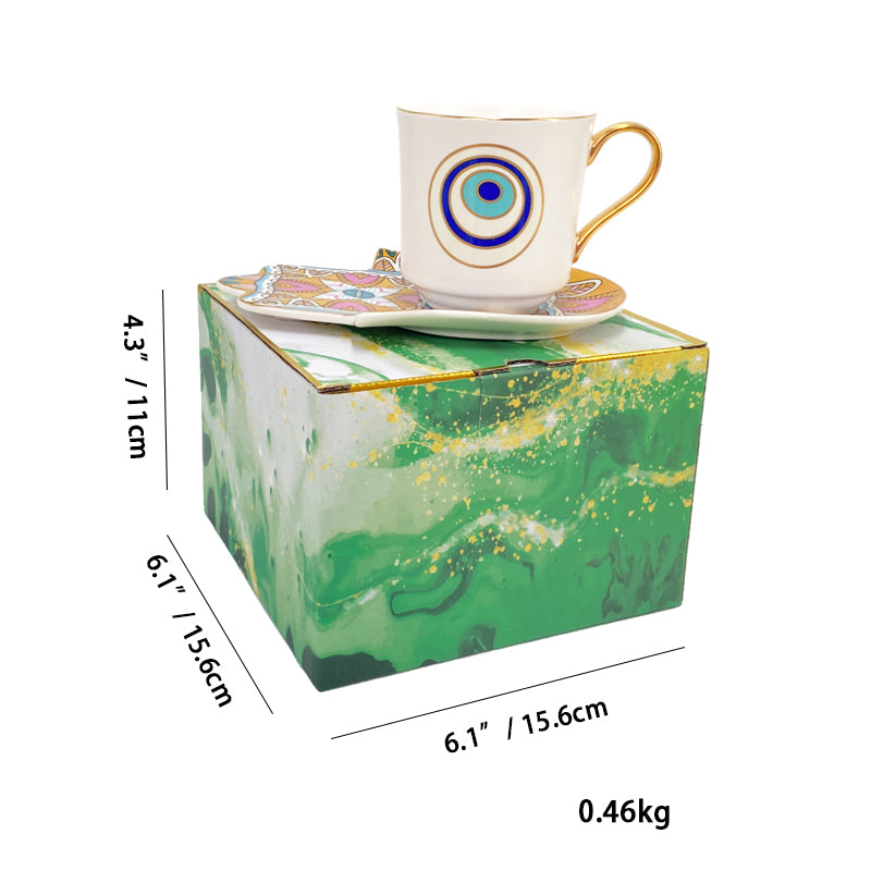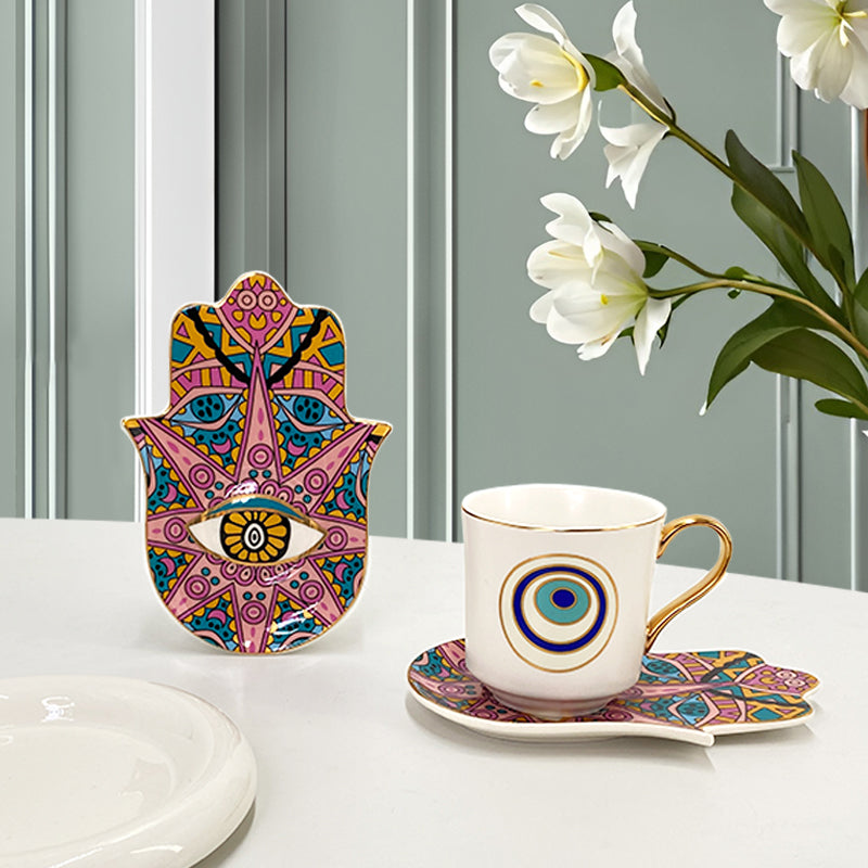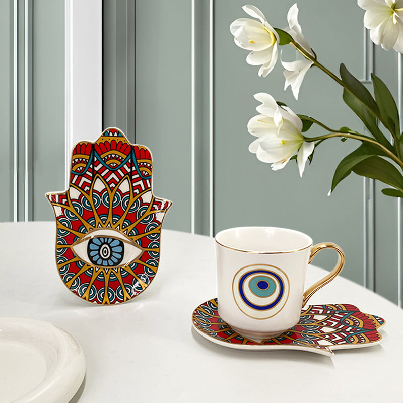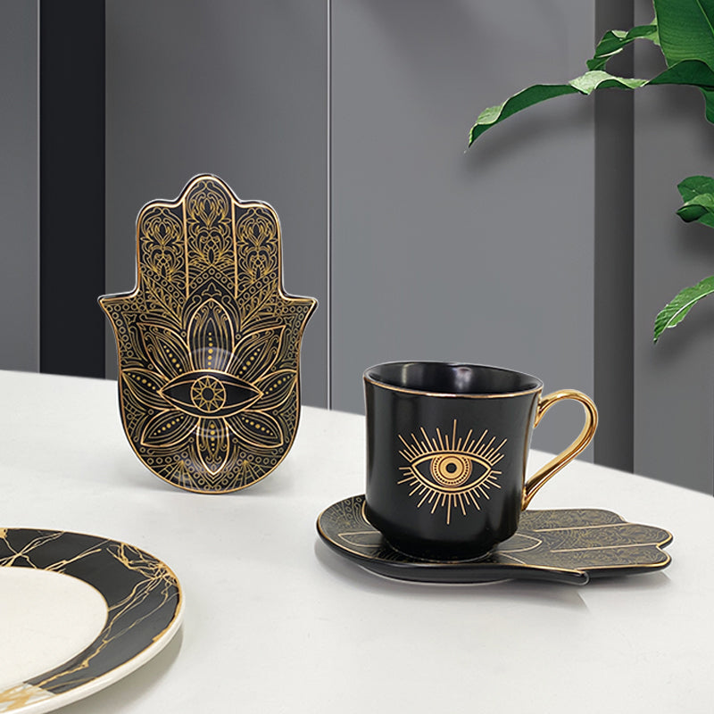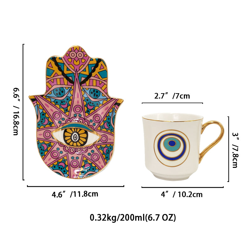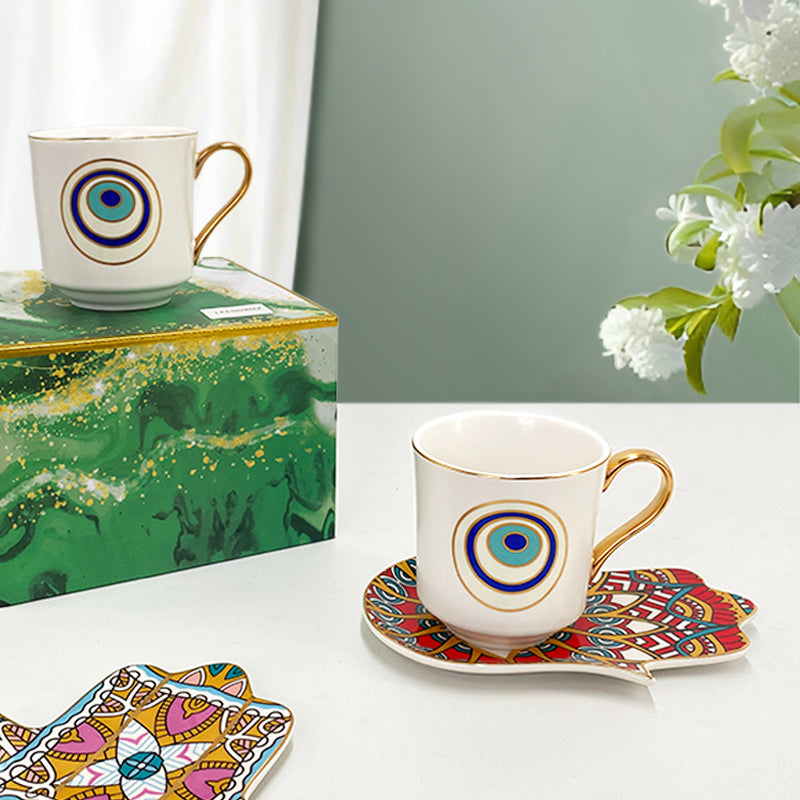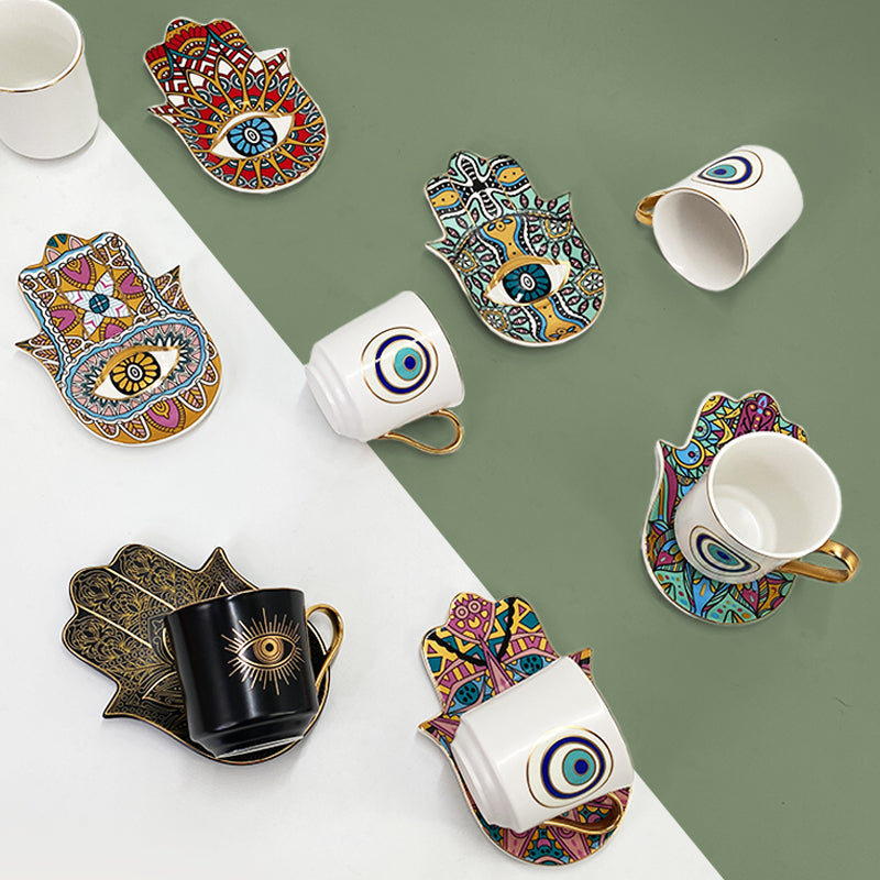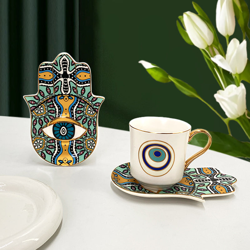 Luxury Ceramic Coffee Cups Saucer Set Hand Skirt Shape Dish Turkish Blue Eyes Design Creative Girl Gift for Tea & Water