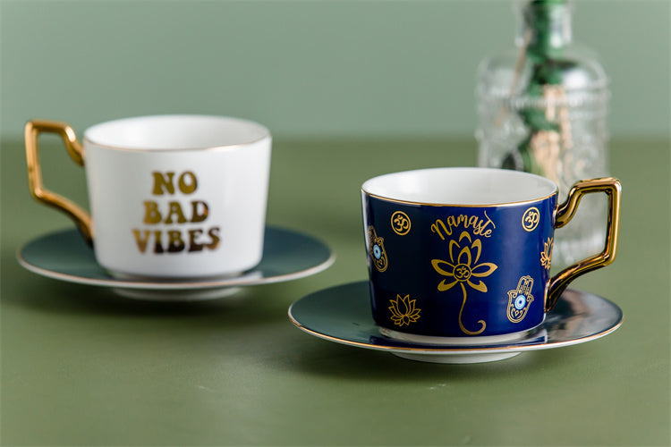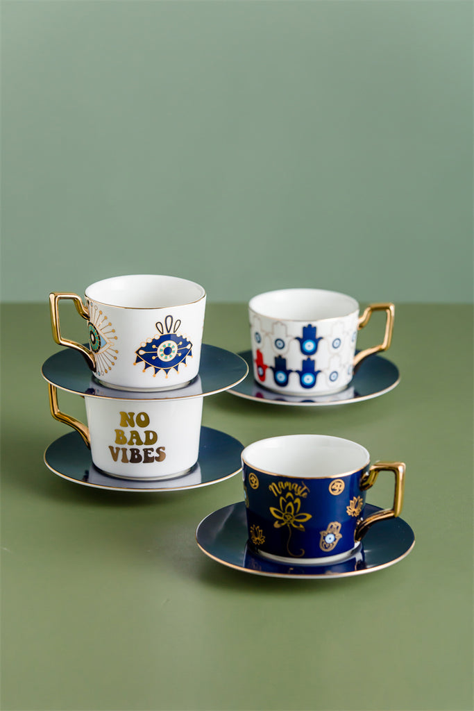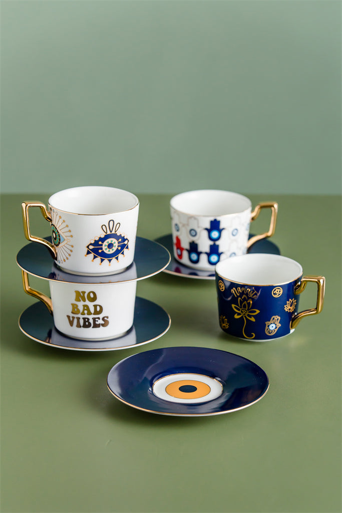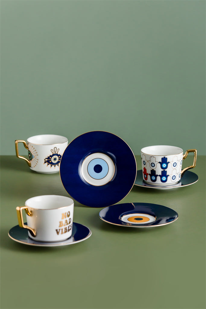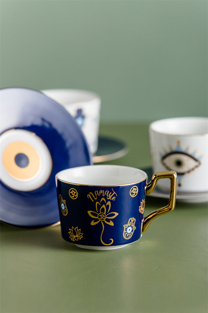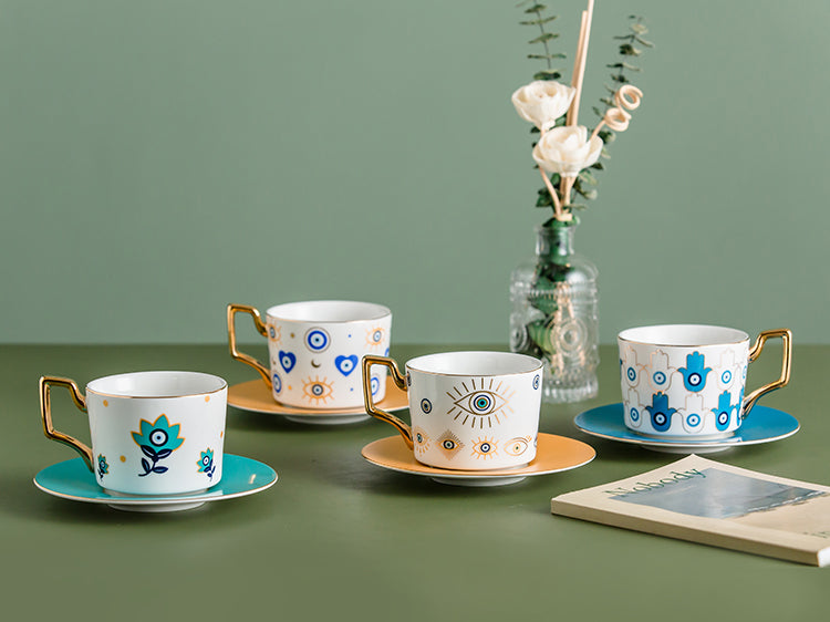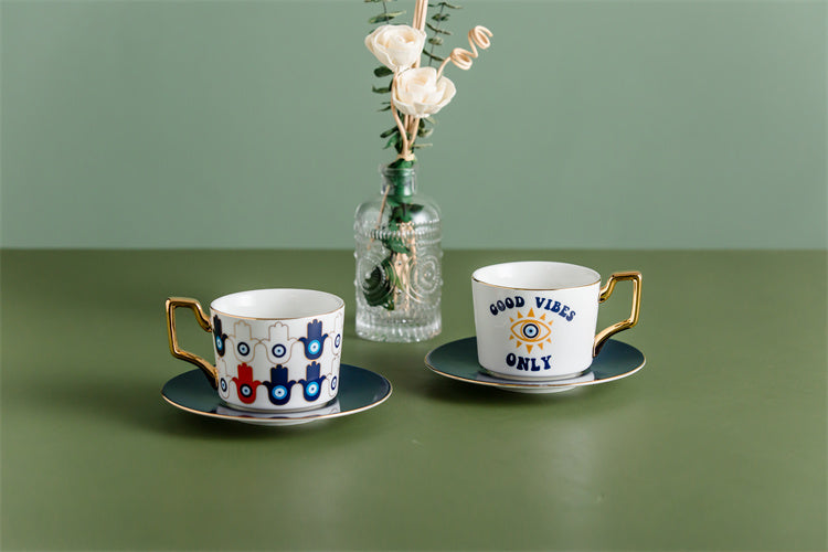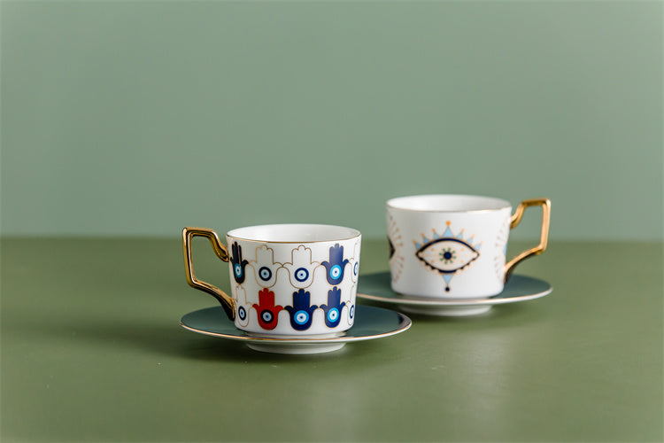 Nordic Luxury Evil Eyes Ceramic Cup and Saucer Set Modern Design Afternoon Tea Turkish Coffee Cup Saucer Set