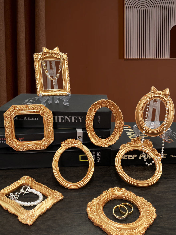 Gold Luxury Photo Frame Shooting Props Retro Ins European-style Relief Nail Art Earrings Display Frame Pose Ornaments